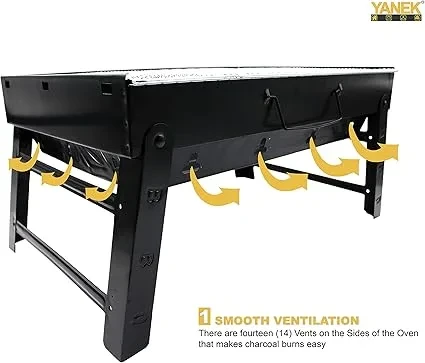 - ♨️ চারকোল সেভিং: গ্রিলটিতে রয়েছে অ্যাশ গ্রুভ এবং চারকোল প্লেট, যা চারকোল এবং অ্যাশ আলাদা করে, এবং একাধিক ভেন্টিলেশন হোলের মাধ্যমে বায়ু চলাচল নিশ্চিত করে।